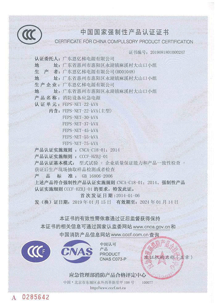 中國國家強制性產品認證(消防設備應急電源)